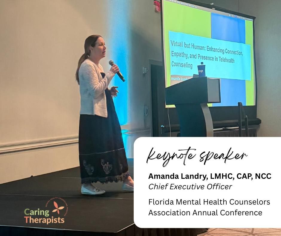 At Caring Therapists, our commitment extends beyond the therapy room. We believe in supporting the professional growth of mental health providers and strengthening the systems that make compassionate, accessible care possible. Amanda’s keynote reflects our ongoing dedication to innovation, connection, and excellence in mental health services.